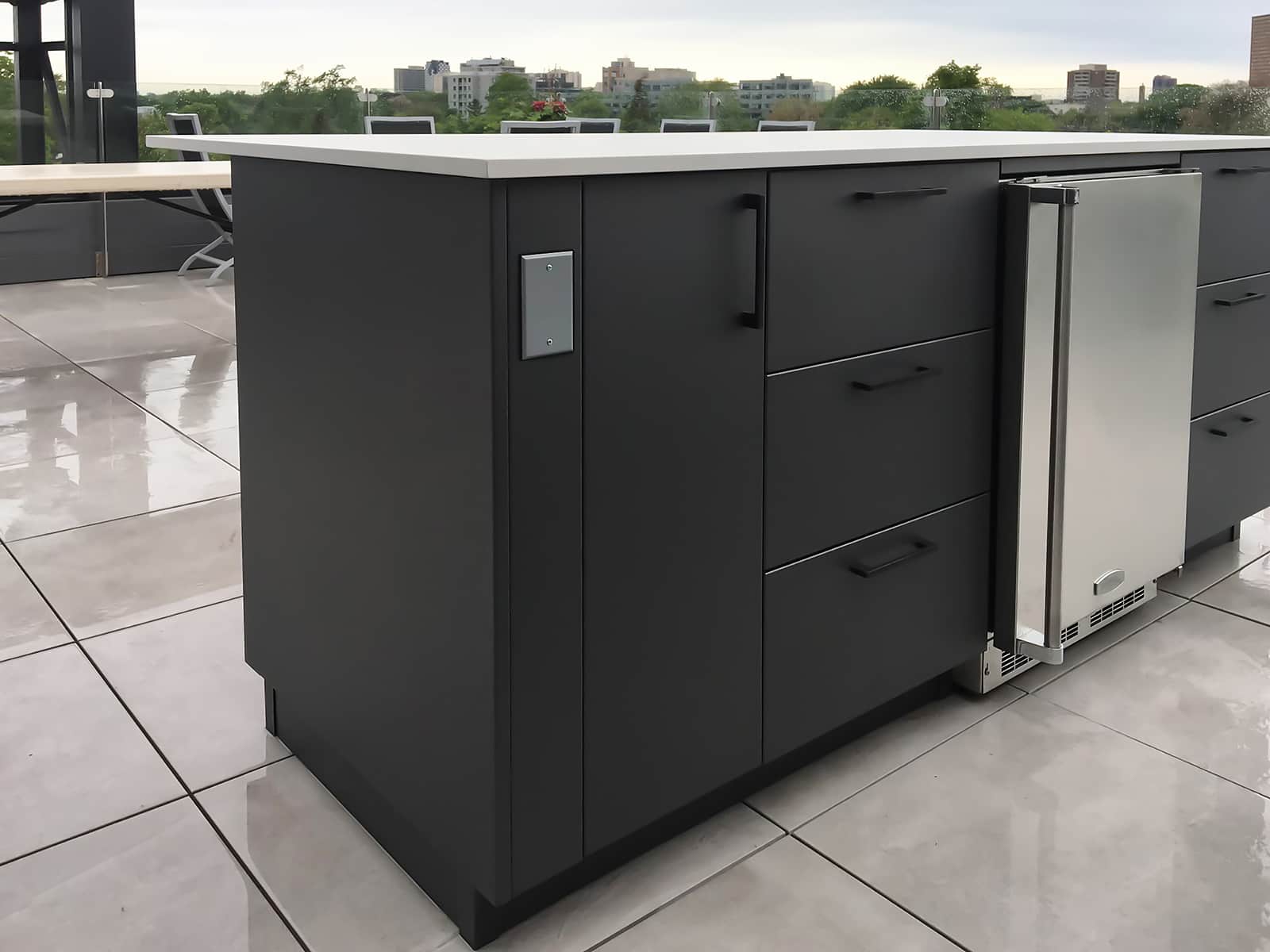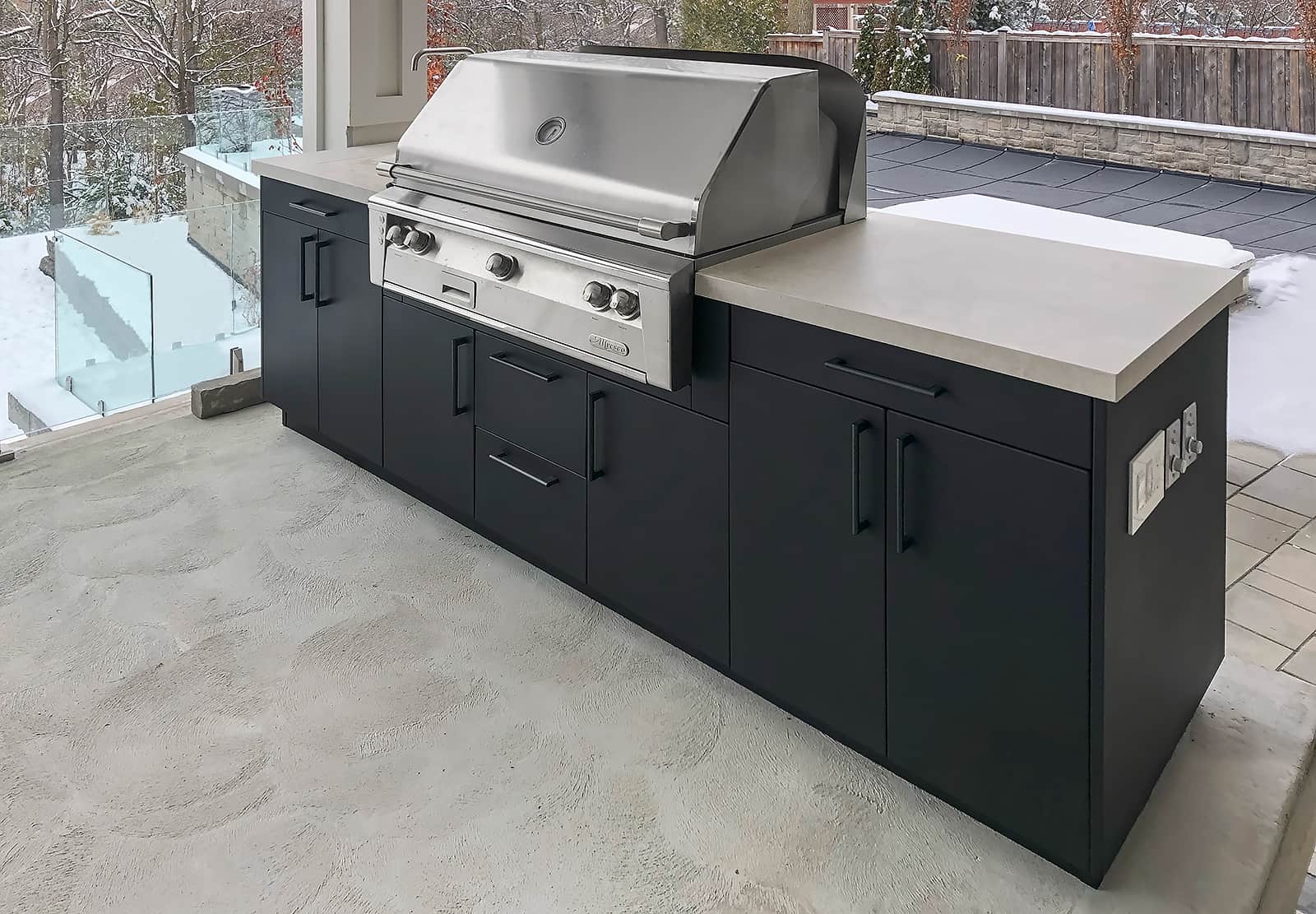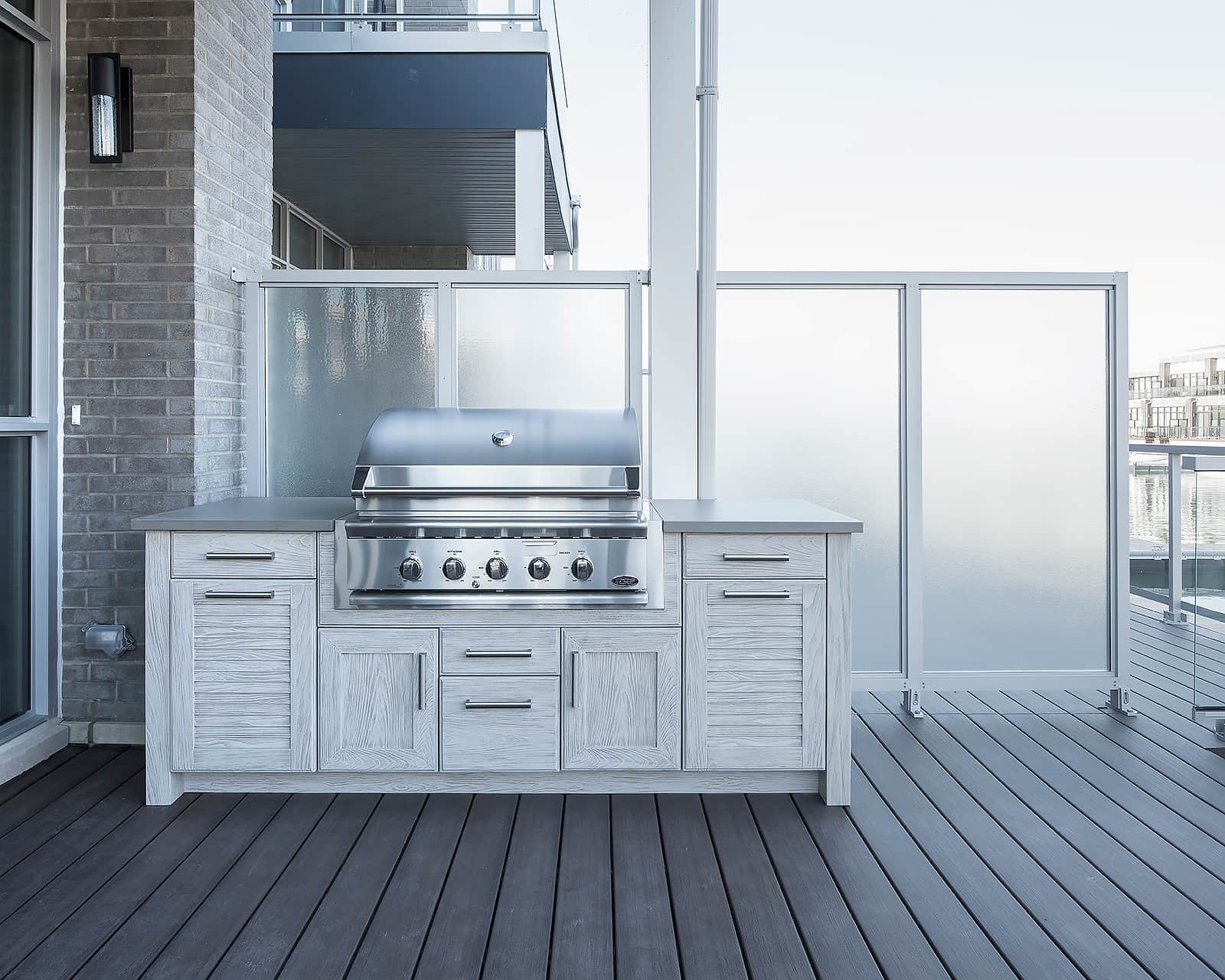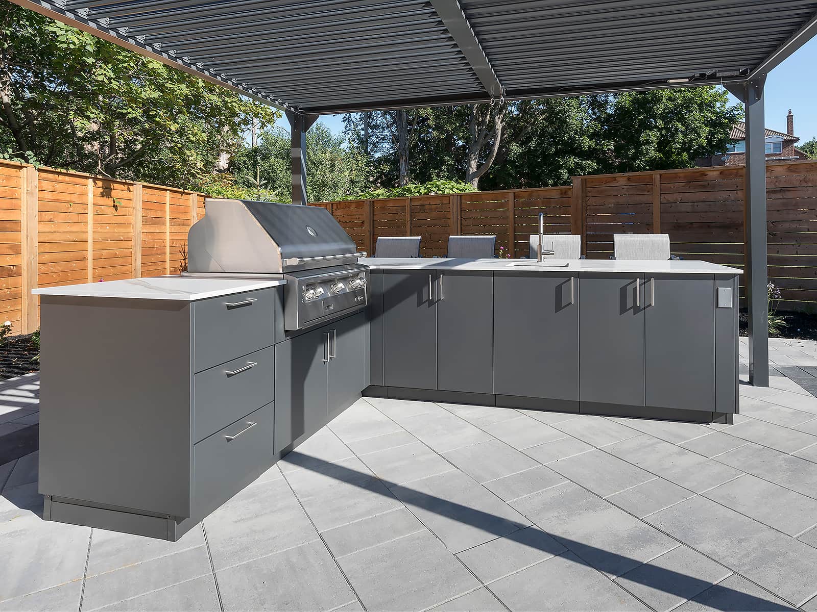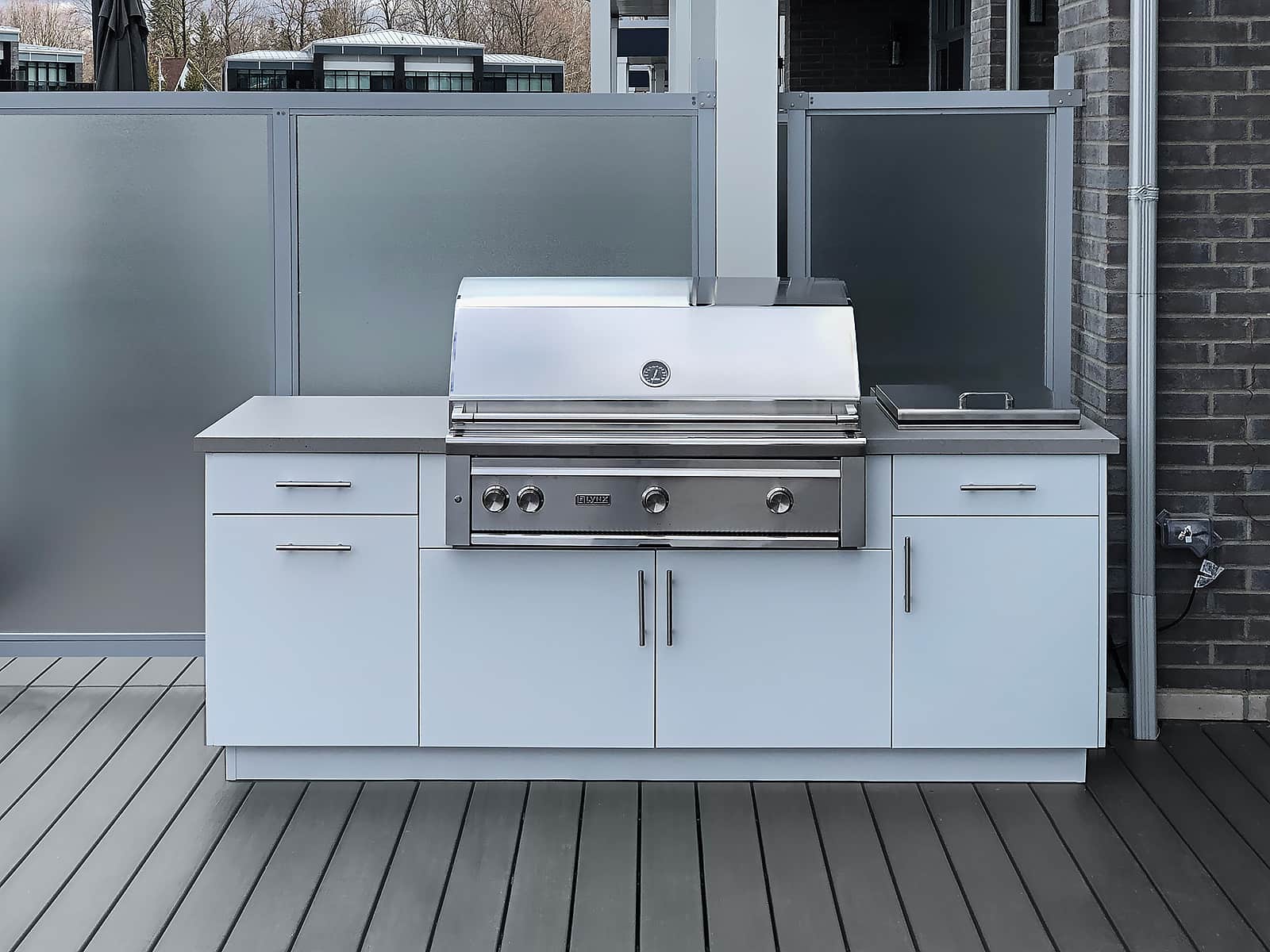 Our marine-grade Alumina cabinetry and weatherproof NatureKast resin conquer the brutal Toronto freeze-thaw cycles. They will never warp, rust, or crack in the winter. We pair these resilient materials with indestructible Dekton countertops and premium grills from Lynx, Alfresco, and Hestan.