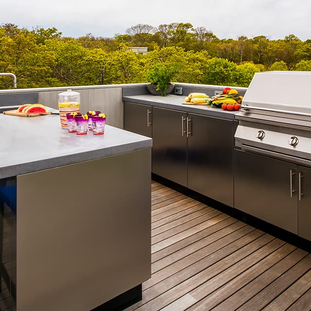 Danver cabinets accommodate most outdoor appliances, regardless of brand or function. All cabinetry is made-to-order in either 304 or 316L grade stainless steel.